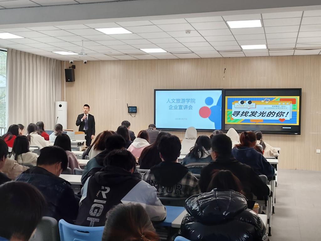 两家企业提供就业岗位近50个,招聘岗位有:总台接待、宴会专员、礼宾员和招商专员等。会上,招聘人员利用PPT宣讲,答疑互动等多种形式介绍企业发展史、企业文化、工作范围、招聘要求、福利待遇等等。同学们积极和招聘人员交流,主动询问公司、工作基本情况。