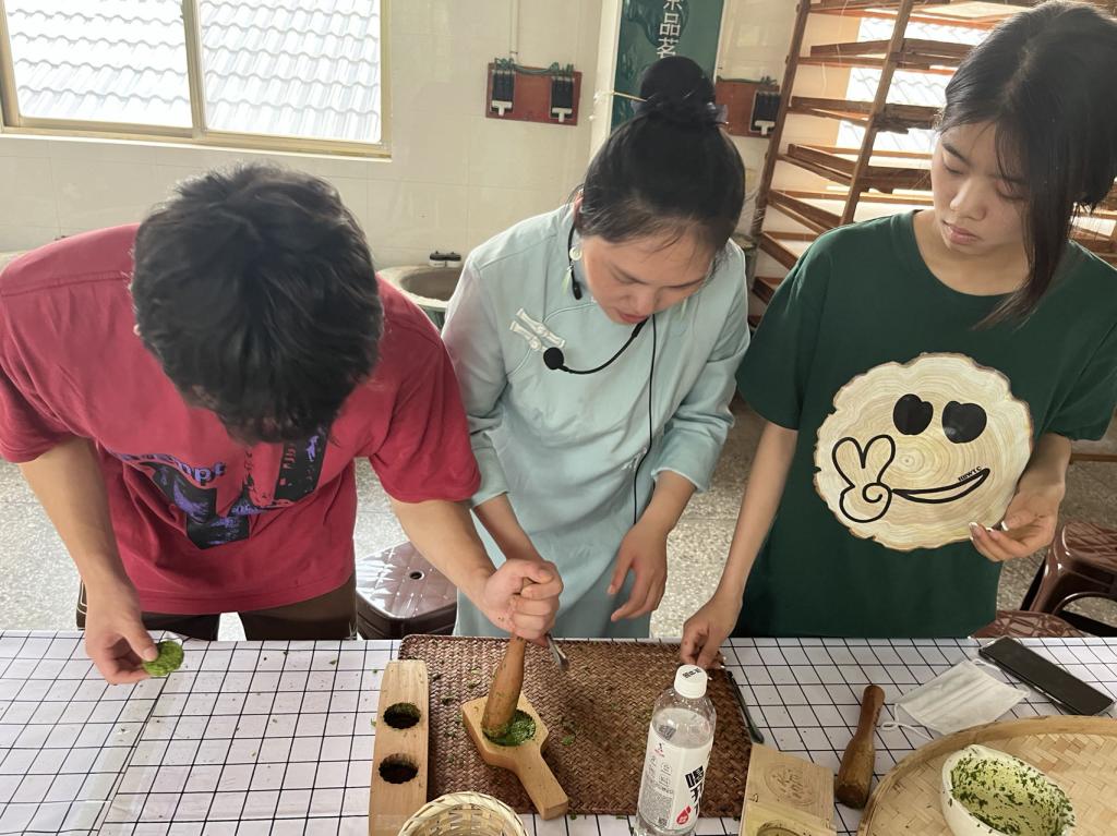 风和日丽的天气里,穿上草帽和挎上小竹篓的同学们走入绿野仙踪般的山林茶园,和老师一起把课堂搬到田野间。他们轻松惬意地学习了原本枯燥的采茶标准、有机茶园管理等知识,仿照古人制作茶饼时,一片咚咚咚的捣茶声响起。虽然嘴里喊着累,但同学们的手却不停歇。在排队蒸茶和比拼茶饼造型的过程中,他们忙得不亦乐乎。加上点茶时的全神贯注,让人仿佛看到了宋代大画家刘松年《斗茶图》上的人物,不是一张静态的图,而是宋人生动的生活场景。