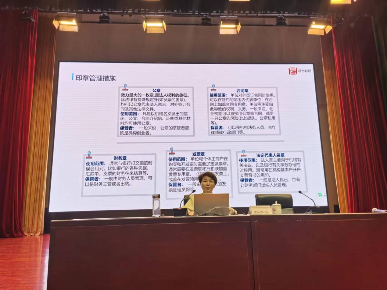 本次特邀义乌市君合税务师事务所有限公司创始人、浙江省科技厅高新技术财务评审专家杨苏芬老师现场授课。杨老师针对民办非企业幼儿园、学校的财务管理、规范化建设等方面进行深入的讲解和释疑,进一步提升了各民办非企业幼儿园、学校的财务规范化程度及工作人员的工作能力,对今后各校的良性发展起到了重要的导向作用。